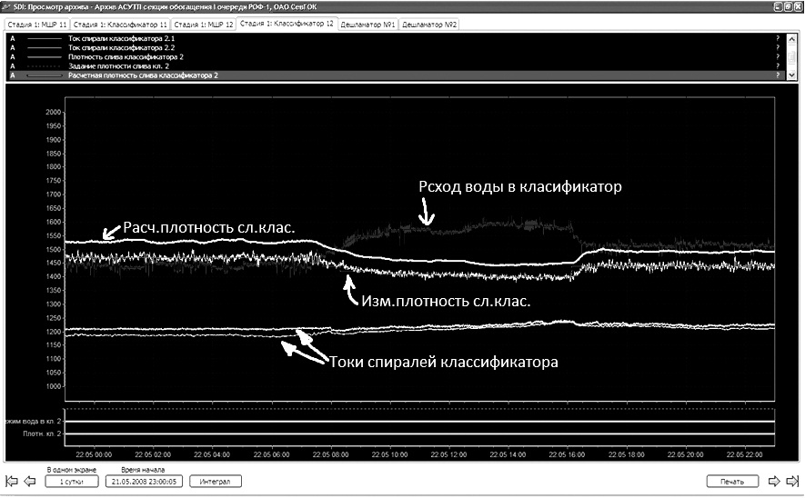 - Регулирование и стабилизацию по заданному параметру плотности пульпы на сливе классификатора.