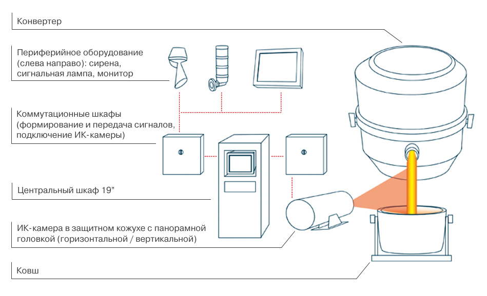 Используемая в СОШ термографическая видеокамера Vario Cam@ с матрицей высокого разрешения осуществляет непрерывное наблюдение за струей металла в процессе выпуска. Как только в струе появляется шлак, система автоматически формирует сигнал тревоги. СОШ является эффективным инструментом поддержания качества и минимизации потерь при получении высокосортной стали. В процессе работы возможна индивидуальная настройка и синхронизация системы под конкретные условия на объекте.