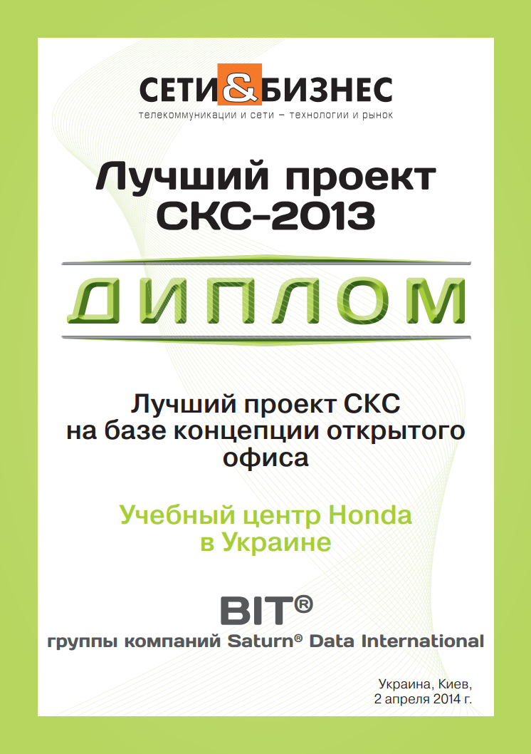 2011 - «Найкращий проект СКС для ЦОД » (проект ЦОД ТОВ «De Novo»);